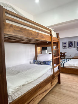 🔟 family rooms (queen or king bed with 2 x 4foot mattress bunk bed) - Rooms 6-9 + Family Deluxe Room 12A & 12B (The Lofts) and Rooms 14-17 (The Studios).
